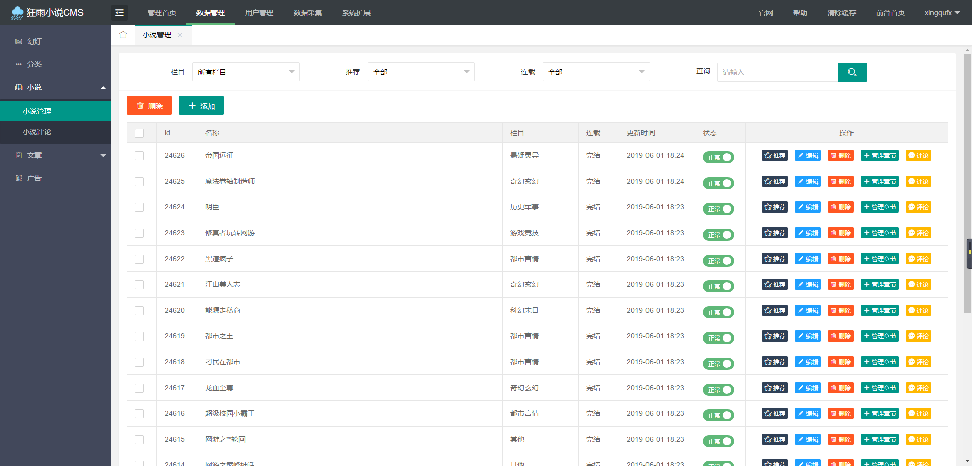 11、小说管理功能